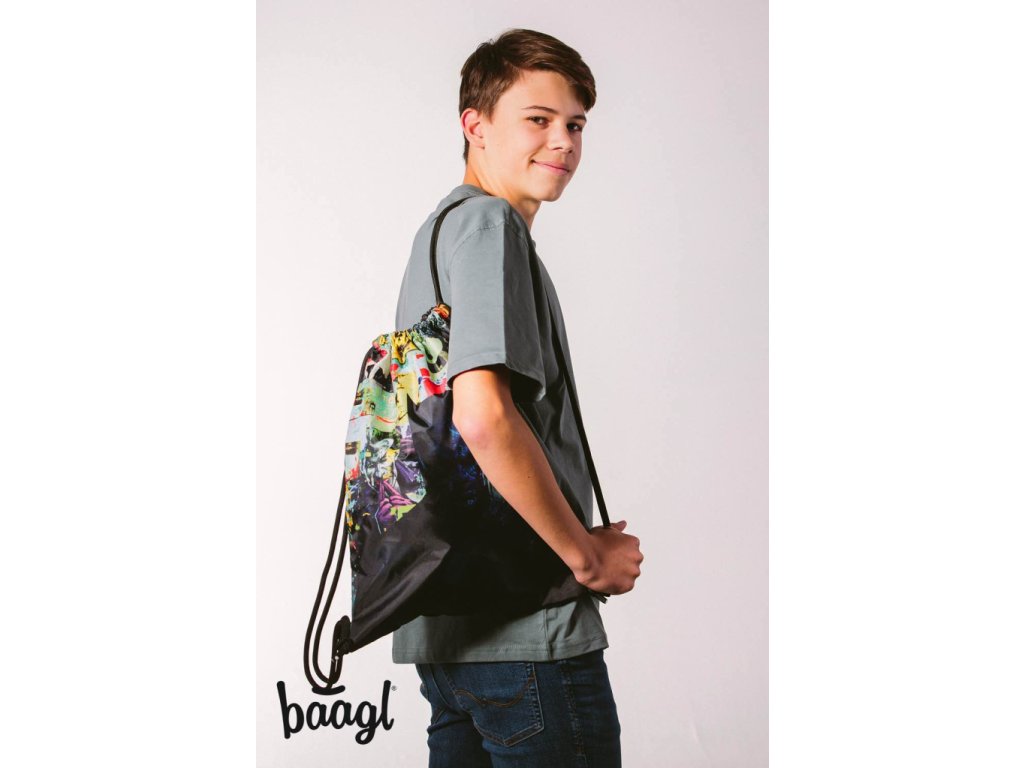 • Vrecko na cvičky alebo prezuvky s logom BAAGL, ktoré za tmy svieti.