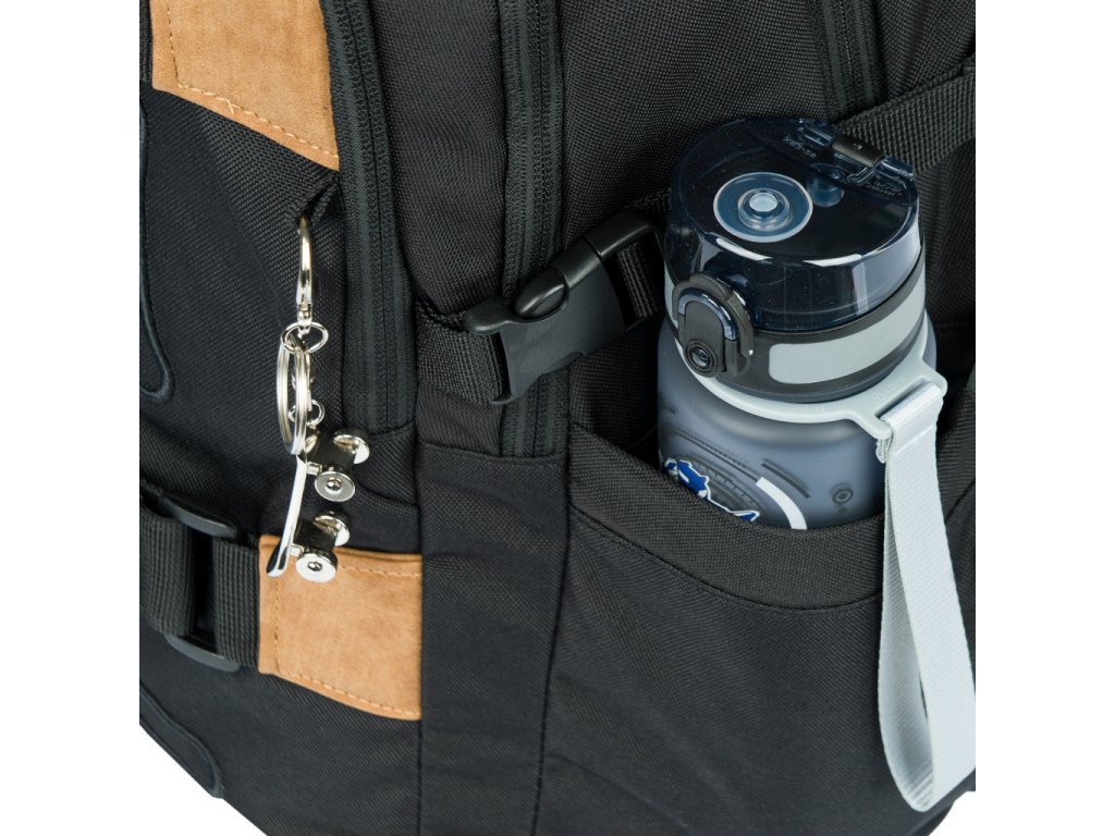• Boční kapsy z pevné materiálu, které jsou vhodné pro jednu z našich lahví na pití.