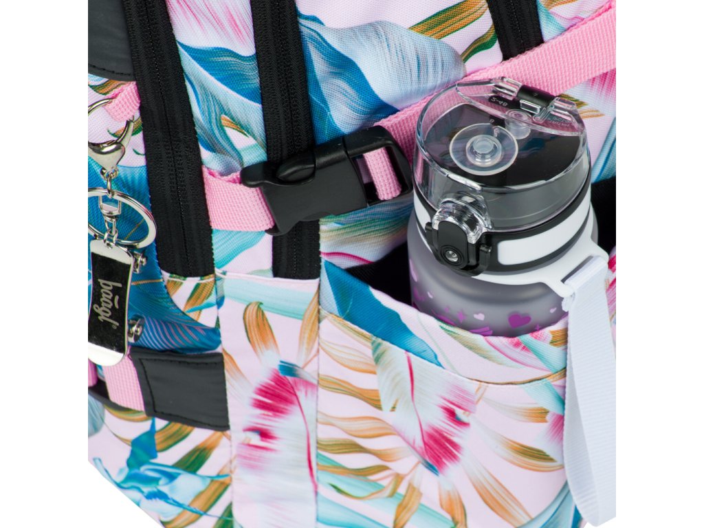 • Boční kapsy z pevné síťoviny, které jsou vhodné pro jednu z našich láhví na pití.