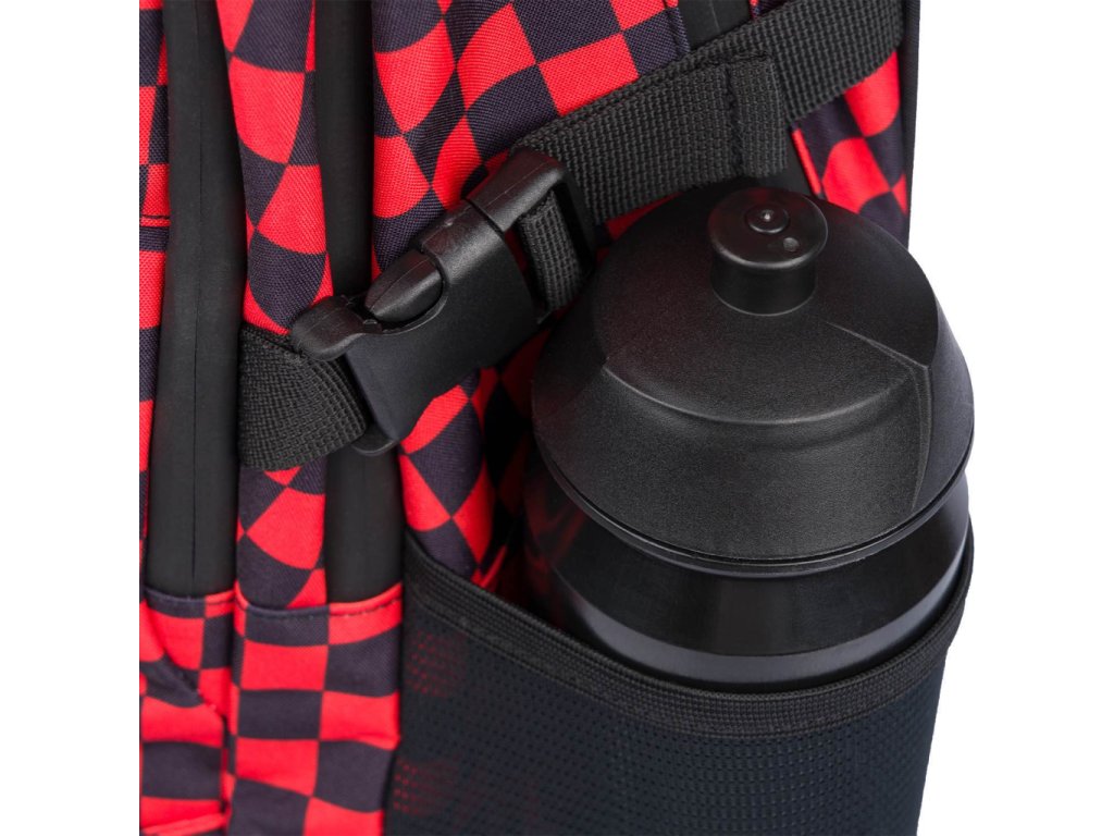 • Boční kapsy z pevné síťoviny, které jsou vhodné pro jednu z našich láhví na pití.