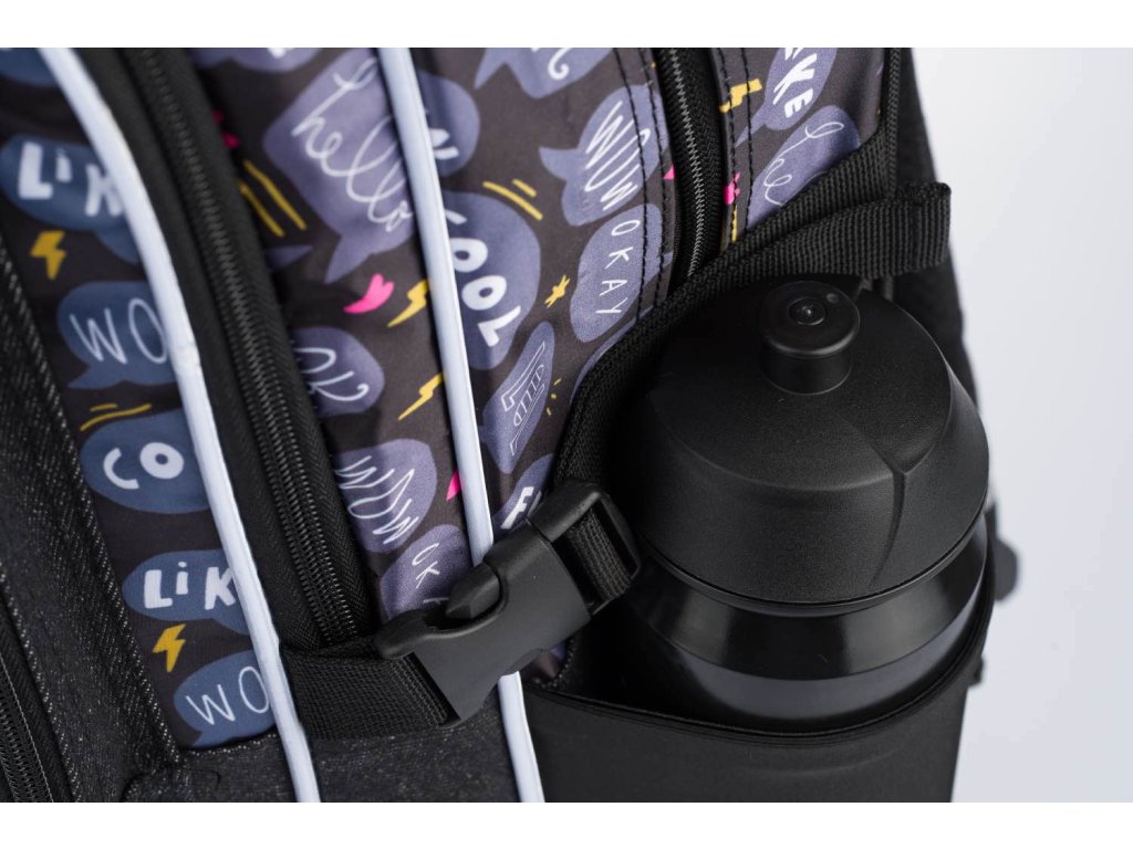• Boční kapsy z elastického materiálu, které jsou vhodné pro jednu z našich láhví na pití.