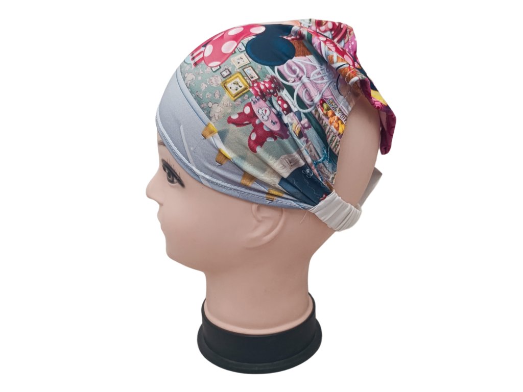 Krásně pružný dívčí šátek s myškou Minnie je velmi příjemný na nošení a díky pružné gumě vzadu se snadno přizpůsobí každému obvodu hlavy. Velkoplošné celolátkové motivy dodávají šátku výrazný a hravý vzhled. Ideální doplněk pro každodenní nošení.