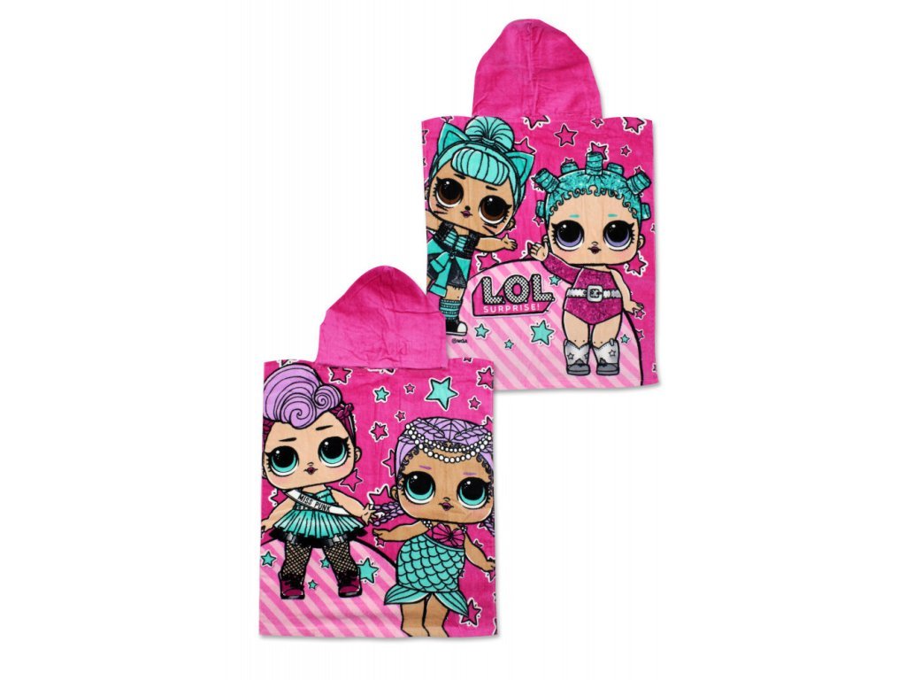 Krásné dětské pončo s oblíbeným motivem LOL Surprise. Na předním i zadním díle jsou vyobrazeny 2 panenky LOL. Pončo je velmi příjemné díky 100% bavlně, má krásné výrazné barvičky.