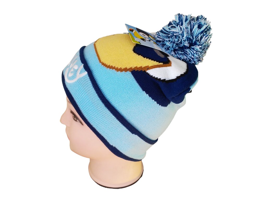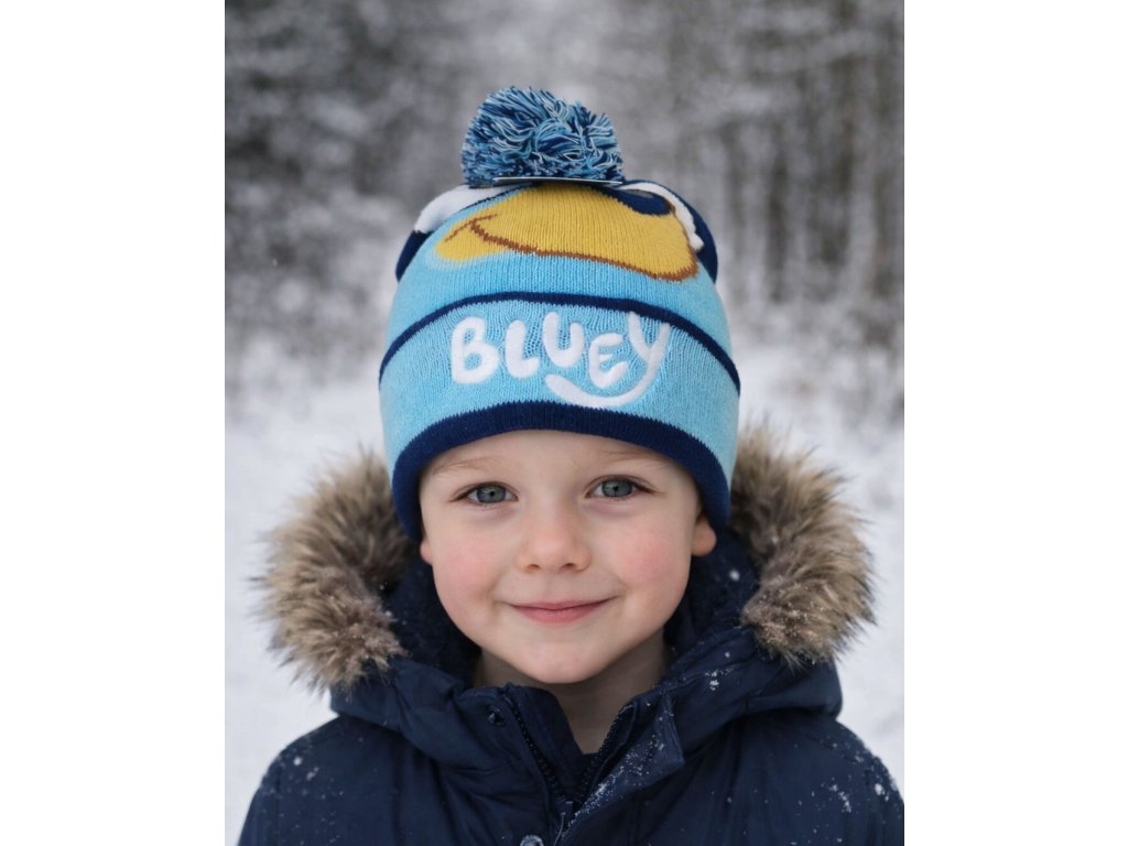 Zimní čepice pro kluky s motivem Bluey – hřejivá a pohodlná čepice s bambulí, krásným motivem a vyšívaným nápisem na obrubě. Čepice je dvouvrstvá úpletová, měkká a příjemná na nošení. Díky pružnému materiálu se skvěle přizpůsobí tvaru hlavy a výborně sedí.