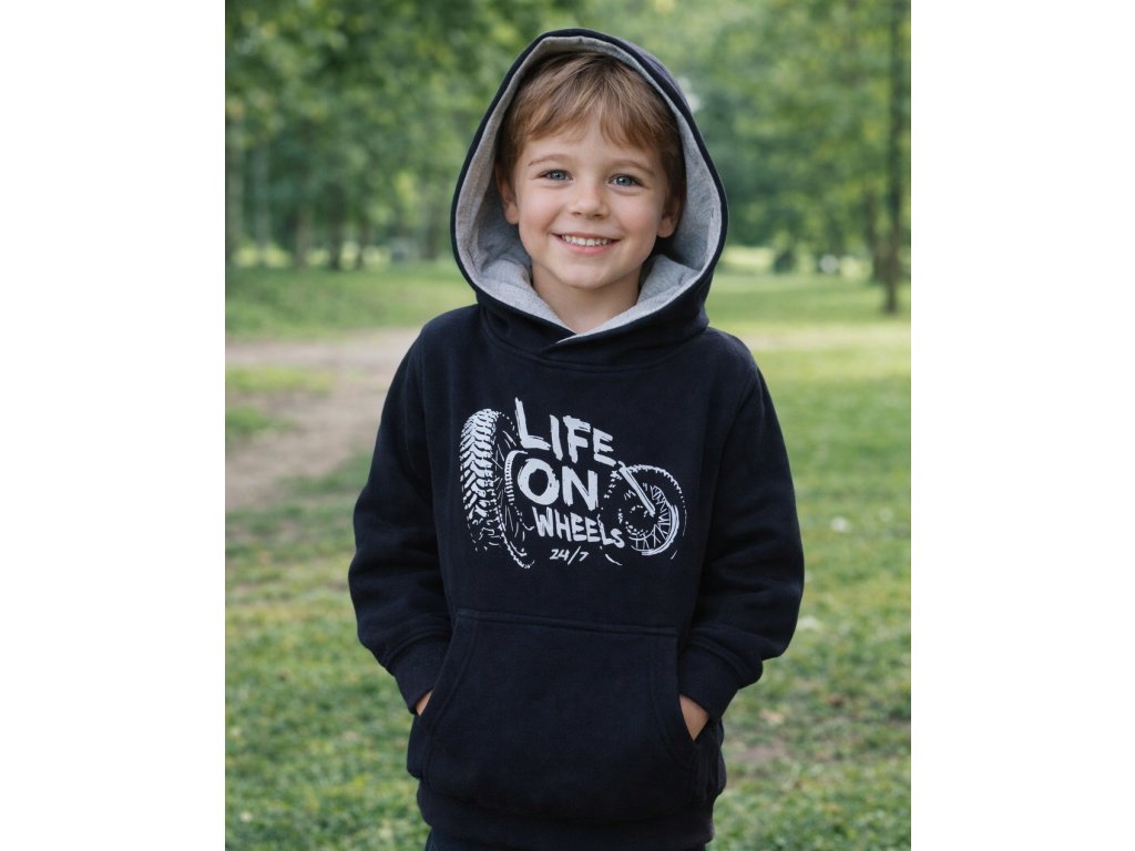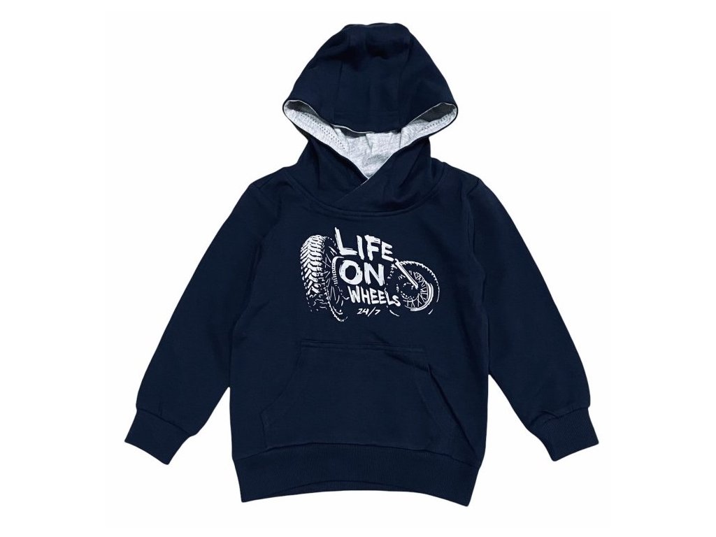 Chlapecká mikina přes hlavu s kapucí temně modrá
