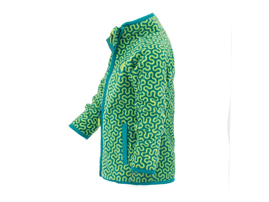 Chlapecká propínací fleezová mikina. Stojací límec, dvě kapsy, barevné kontrastní lemy.