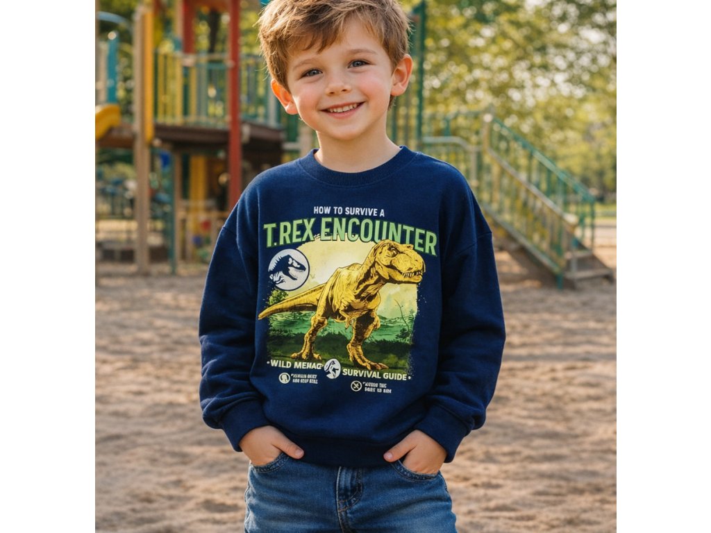 Chlapecká mikina Jurský svět potěší každého malého fanouška dinosaurů. Hřejivá mikina s česaným chloupkem uvnitř má pružné manžety a pohodlný střih, který umožňuje volný pohyb při běžných aktivitách. Motiv krvelačného T-Rexe dodává mikině hravý a dobrodružný vzhled.