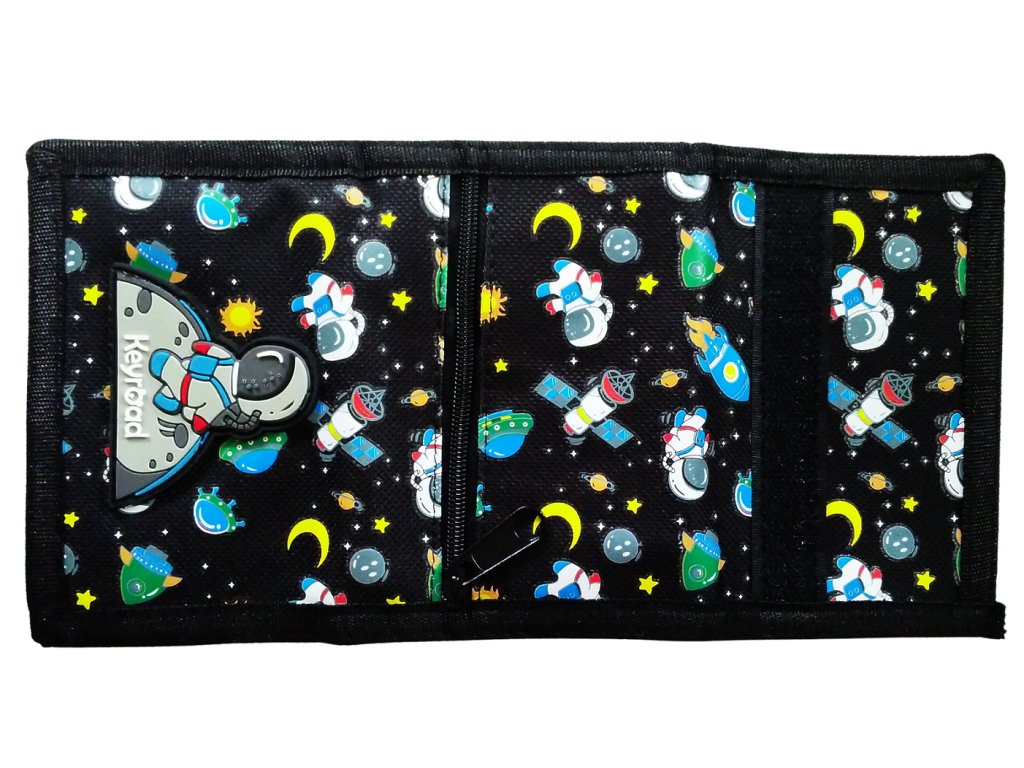 Na dobrodružnou výpravu do kosmu potřebují kluci stylovou peněženku. 3D obrázek kosmonauta dělá peněženku originální a velmi zajímavou. Uvnitř má jednu velkou přihrádku na zip a spoustu dalších menších přihrádek. Snadno se vejdou bankovky, karty i doklady. Peněženka má i další přihrádku se zapínáním na zip na své venkovní straně.