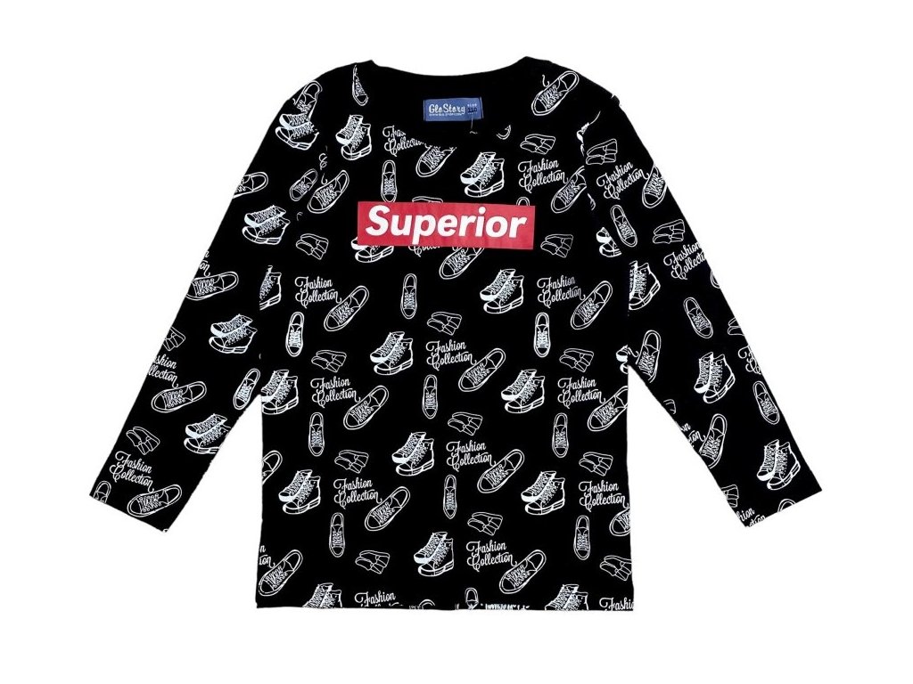 Skvělé tričko pro malé šampiony! Tričko s dlouhým rukávem je vyrobeno z velmi příjemné bavlny, zdobí ho celoplošný látkový motiv tenisek a klukům se opravdu líbí.