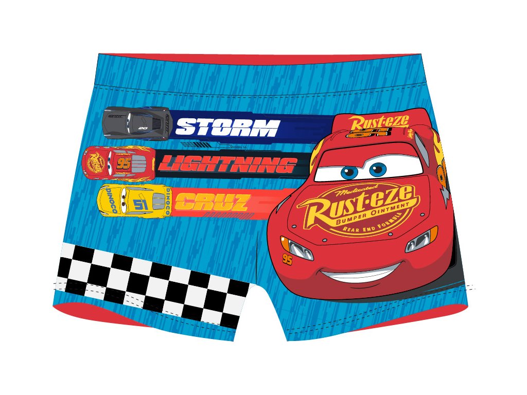 Plavky pro kluky s motivem Bleska McQueena z Auta – super pružné, pohodlné a ideální pro řádění ve vodě. Skvělá volba na koupaliště, k moři i do bazénu.