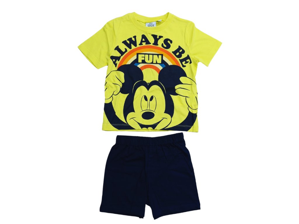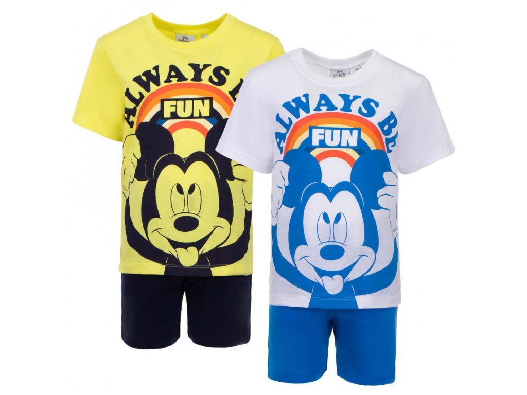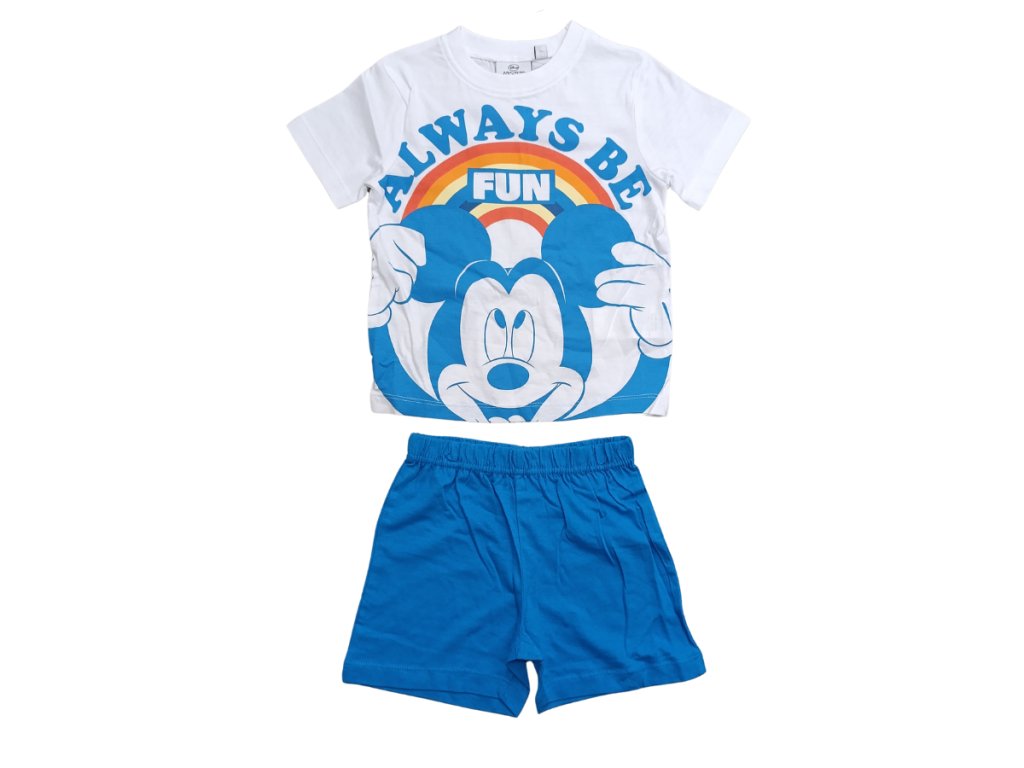 Chlapecké bavlněné pyžamo Mickey Mouse potěší všechny malé fanoušky oblíbeného myšáka. Pyžamo je ideální pro jarní a letní období a skládá se z trička s motivem Mickeyho a kalhot s pružným pasem pro pohodlné nošení. Vyrobeno z kvalitní bavlny, je velmi příjemné a pohodlné na spaní i odpočinek.
