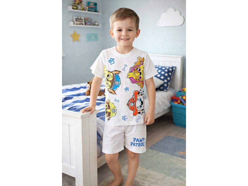 Chlapecké bavlněné pyžamo Paw Patrol se šortkami plní sny malých fanoušků oblíbených pejsků záchranářů. Pyžamo je velmi pohodlné, vyrobeno z vysoce kvalitní bavlny a v pase má příjemně pružnou gumu pro snadné nošení. Roztomilé tváře Chase, Marshalla, Rubble a jejich kamarádů už se těší na nové dětské parťáky plné energie a dobrodružství.
