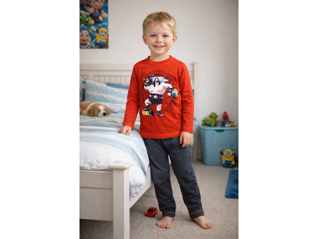 Pyžamo pro kluky s motivem Mimoňů. Pyžamko je příjemné na spaní, vyrobeno z kvalitní bavlny. Nohavičky jsou ukončeny pružnými manžetami.