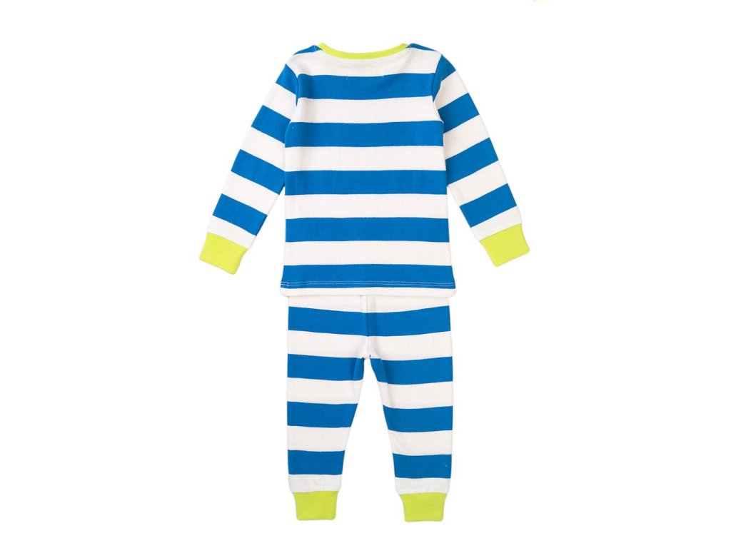 Bavlněné chlapecké pyžamo pro malé i větší kluky z příjemného materiálu šetrného k pokožce. Pohodlné na spaní, s veselým proužkovaným vzorem.
