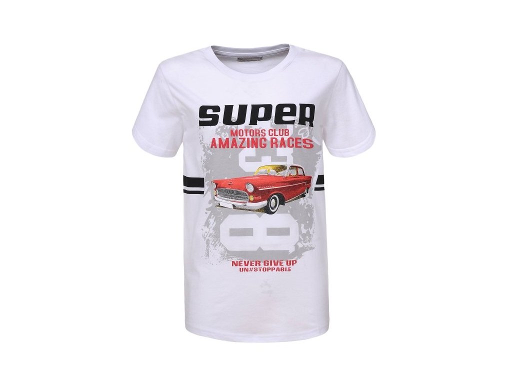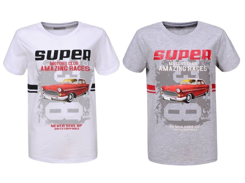 Chlapecké tričko s krátkým rukávem ve dvou barvách : bílá a šedá. Tričko s autem je vyrobeno z kvalitní bavlny, je pohodlné, pružné.
