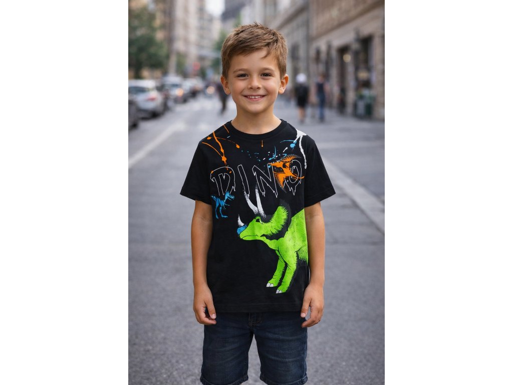 Krásné černé tričko s motivem oblíbených dinosaurů. Tričko je s nádechem akce a dobrodružství je pohodlné s klasickým střihem. Je vyrobeno ze 100 % bavlny.
