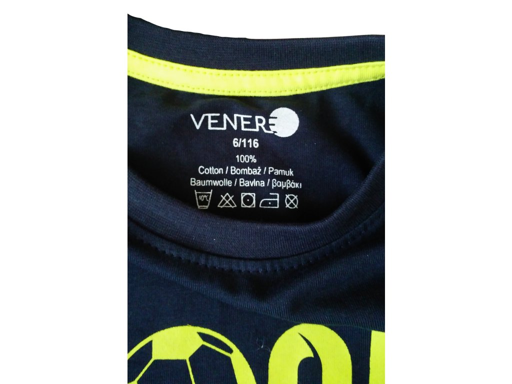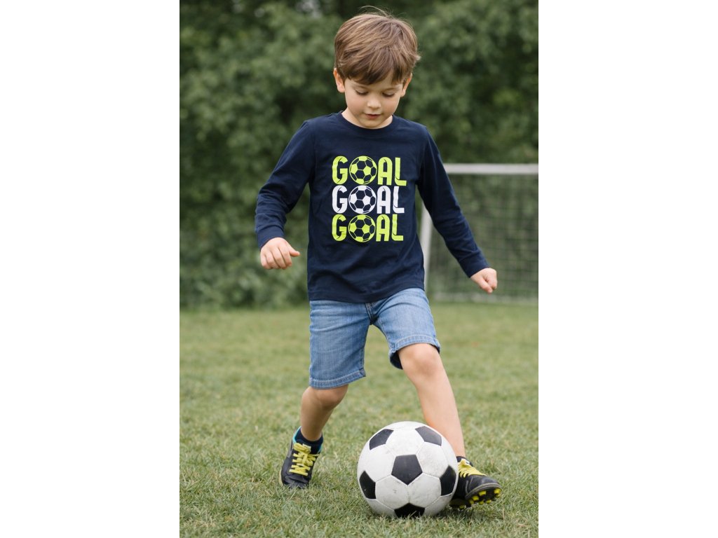 Bavlněné chlapecké tričko, které potěší malé sportovce a zejména fotbalové nadšence. Tričko s nápisy a motivem fotbalového míče je velmi povedené, příjemné na nošení a vyrobené z kvalitní bavlny. Elegantní tmavě modrá barva přecházející až do černa mu dodává stylový vzhled.