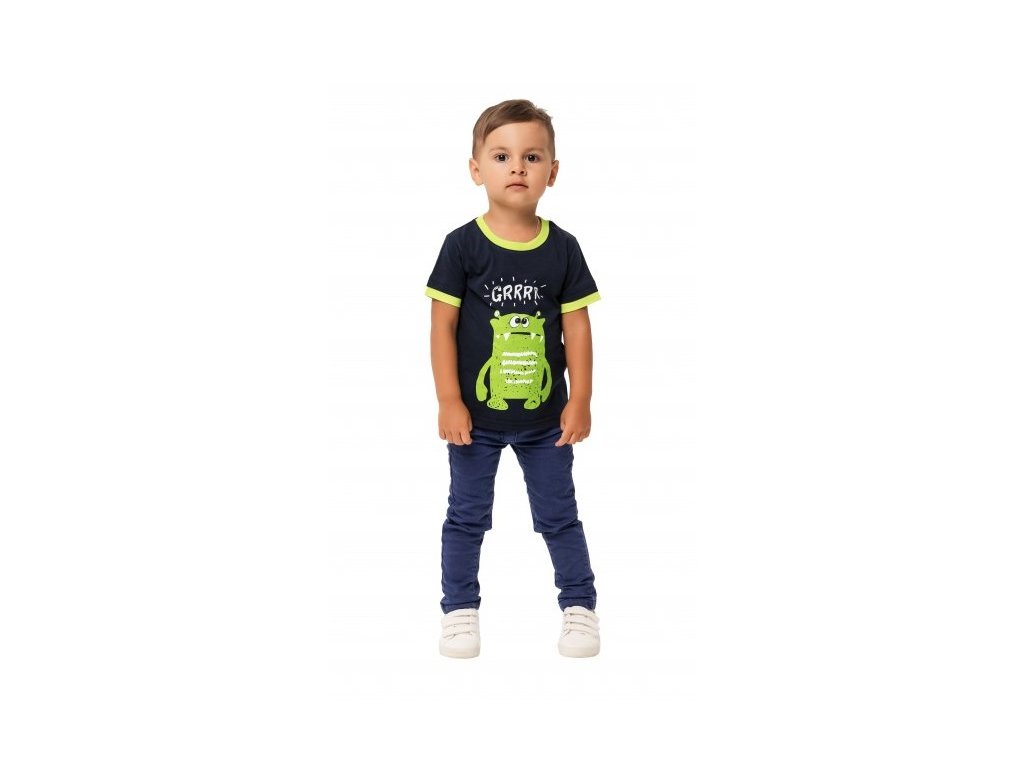 Super tričko z bio bavlny pro kluky, které si rychle oblíbí. Zelená příšerka na přední straně je ochráncem hodných kluků a skvělým parťákem na každé dobrodružství. Ať už vyrazí do přírody, do školky nebo do školy, tohle tričko se hodí pro každou příležitost. Je velmi příjemné na nošení a praktické pro každodenní využití. Stylový vzhled podtrhuje výrazné, ale vkusné neonově zelené lemování rukávů a výstřihu.