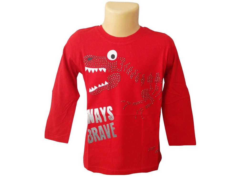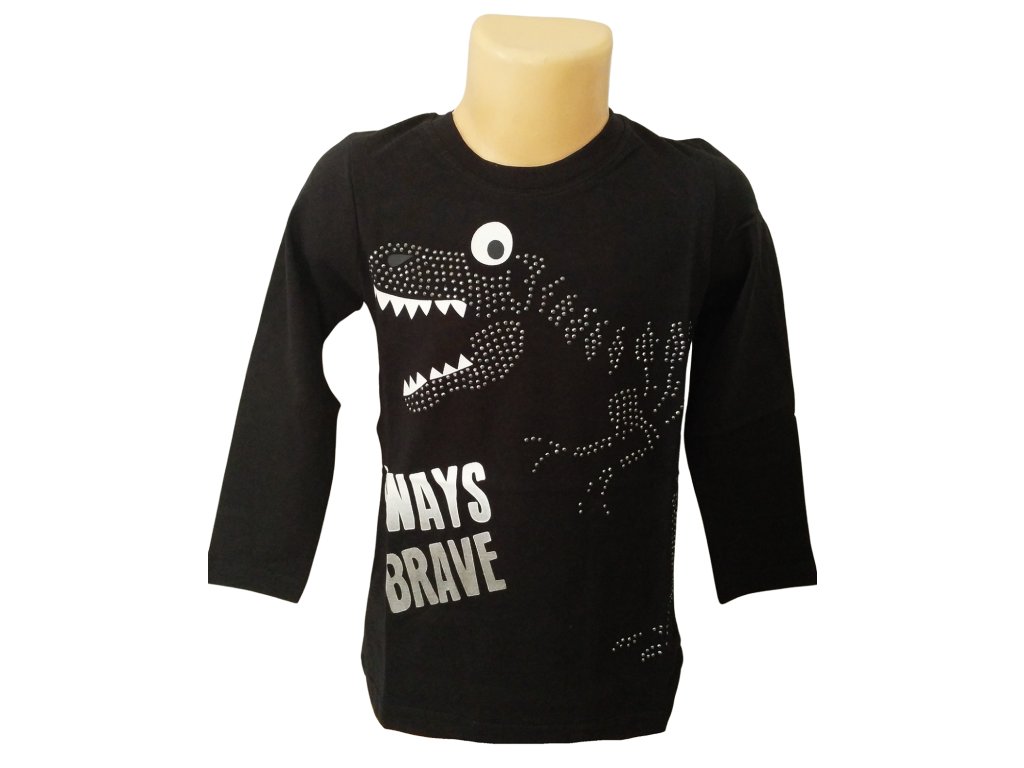 Parádní tričko pro malé objevitele dinosaurů! Dlouhý rukáv, vyrobeno z kvalitní bavlny, krásně pružné a příjemné na nošení. Motiv dinosaura je výrazný a ozdoben drobnými nýty, takže tričko působí opravdu originálně. Skvělá volba pro kluky, kteří chtějí neokoukané kousky do svého šatníku.