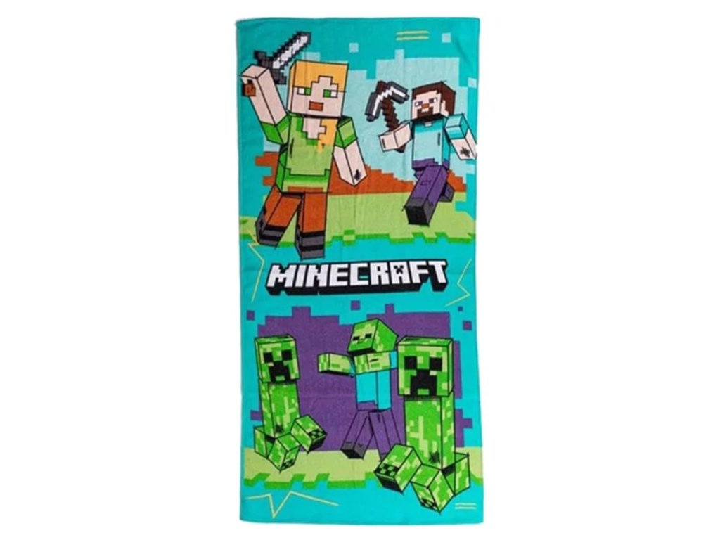 Na této osušce pro děti a teenagery se střetávají různé postavy hry Minecraft a ocení ji zapálení hráči a fanoušci tohoto kostičkového světa.