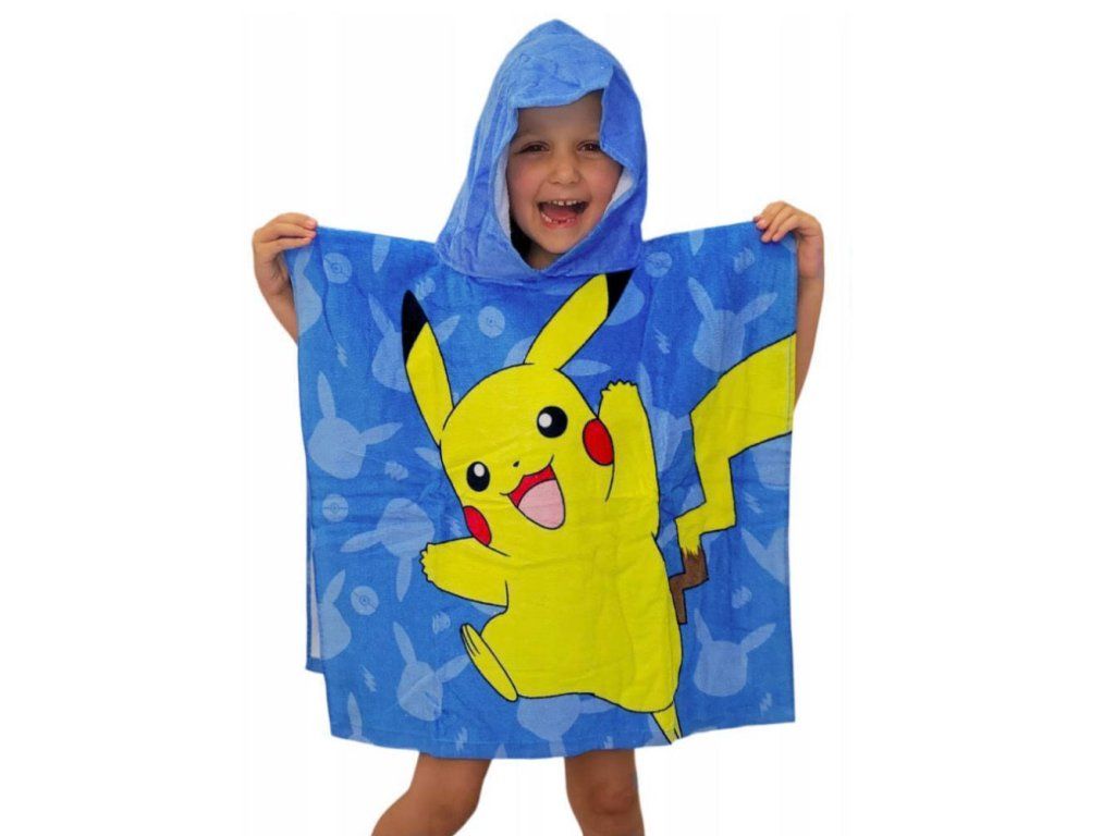 Dětské plážové pončo Pokémon přináší oblíbené postavičky z Pokémon světa přímo k vodě. Na přední straně ponča je výrazný obrázek Pikachu, zatímco zadní část zdobí Squirtle. Modré pozadí s jemnými motivy dodává ponču veselý a hravý vzhled.