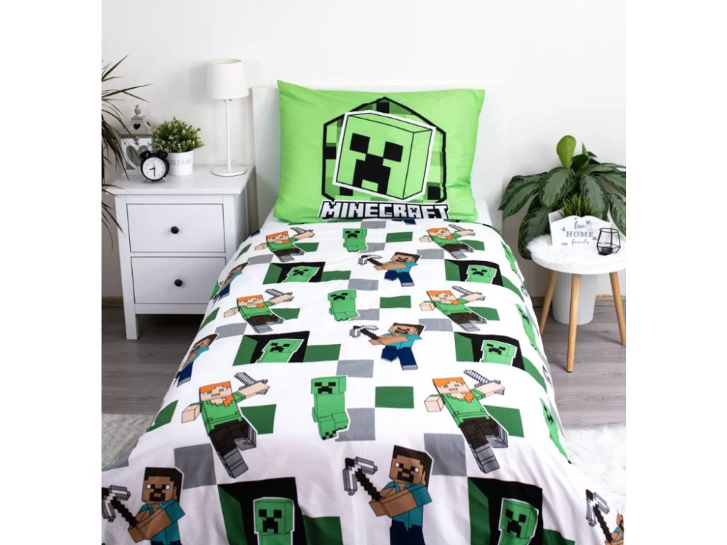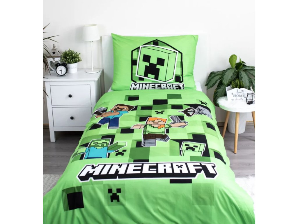 Dětské povlečení mikrovlákno Minecraft zelené 140x200