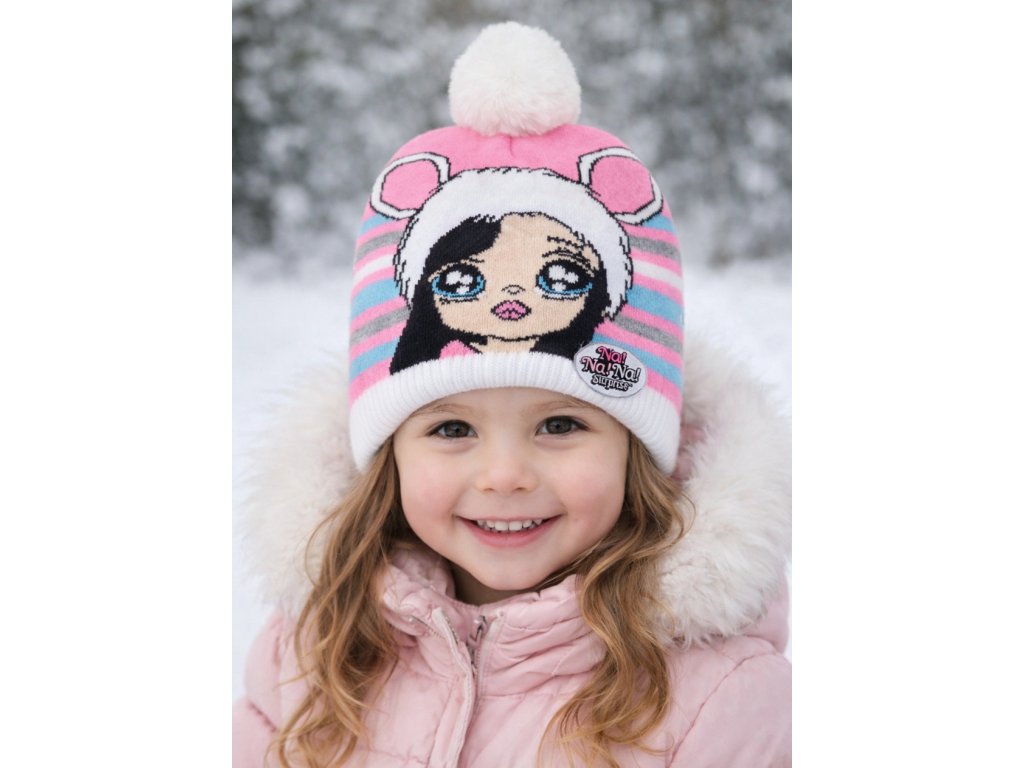 Dívčí zimní čepice NA NA NA Surprise – veselá, pohodlná a příjemná. Díky dvouvrstvé konstrukci krásně hřeje a pruží, takže dobře sedí na hlavičce. Jasné barvičky rozzáří zimní dny.