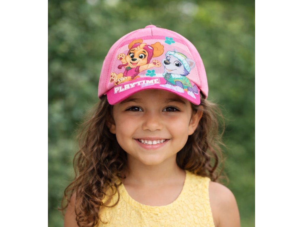Stylová kšiltovka Paw Patrol s motivem oblíbených psích hrdinek Skye a Everest potěší každou malou fanynku. Poskytuje ochranu před slunečním zářením, má pevný vyztužený kšilt a klasické nastavení velikosti v zadní části. Výrazná růžová barva krásně doplní dívčí outfit a lehký bavlněný materiál zajistí pohodlí i během horkých letních dnů.