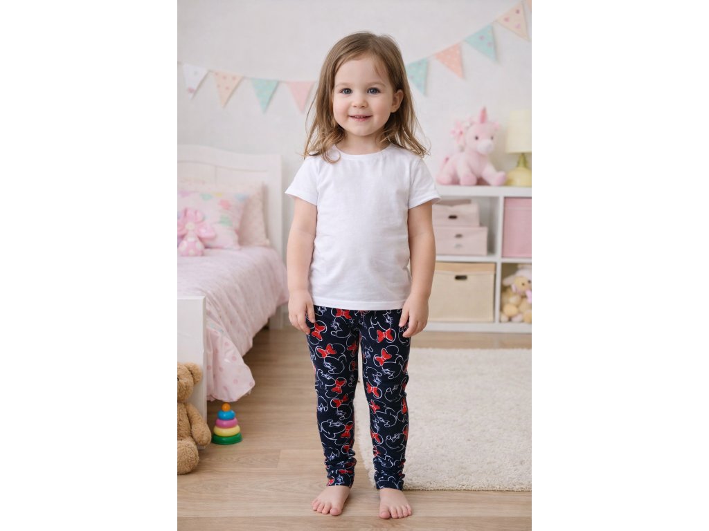 Dívčí bavlněné legíny s myškou Minnie jsou velmi příjemné, vyrobené z neprůhledné pružné bavlny s příměsí elastanu. Jsou ideální do školy, do školky i na doma.