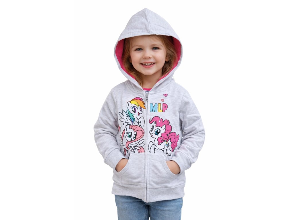 Stylová mikina s oblíbeným motivem My Little Pony je ideální na nošení po celý rok. Má pohodlné zapínání na zip, kapsy na břiše a praktickou kapuci.