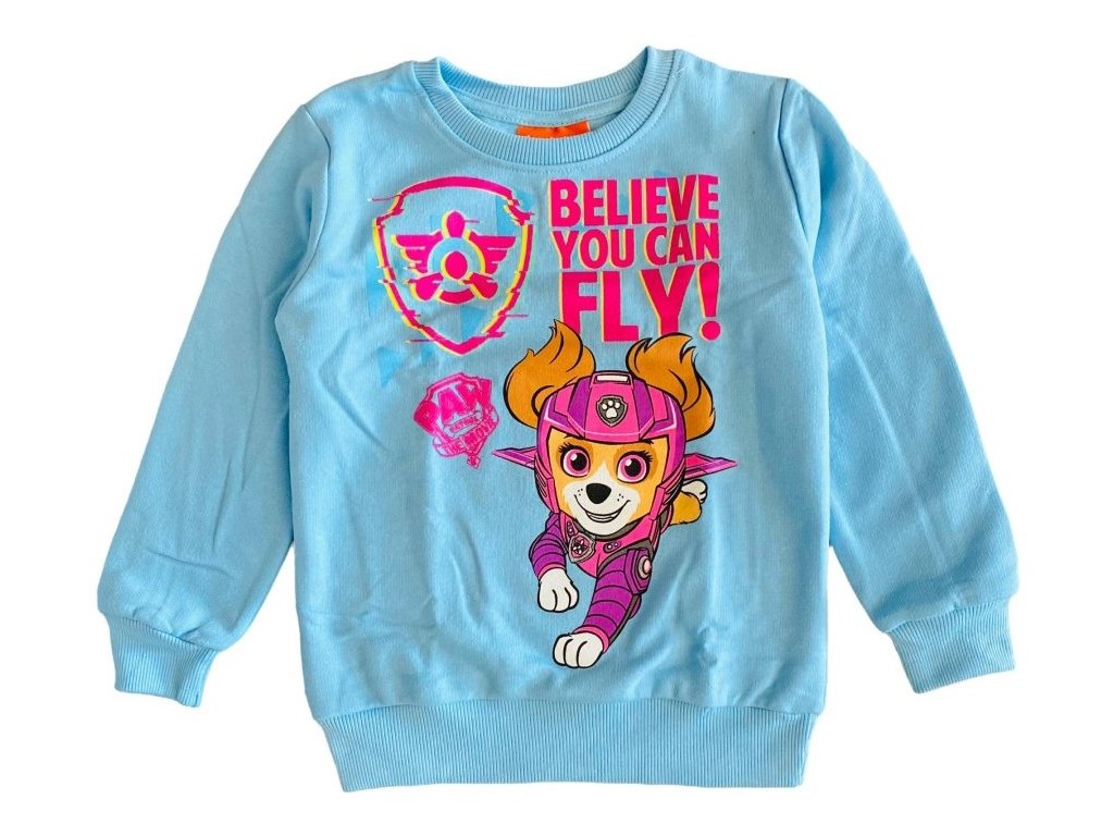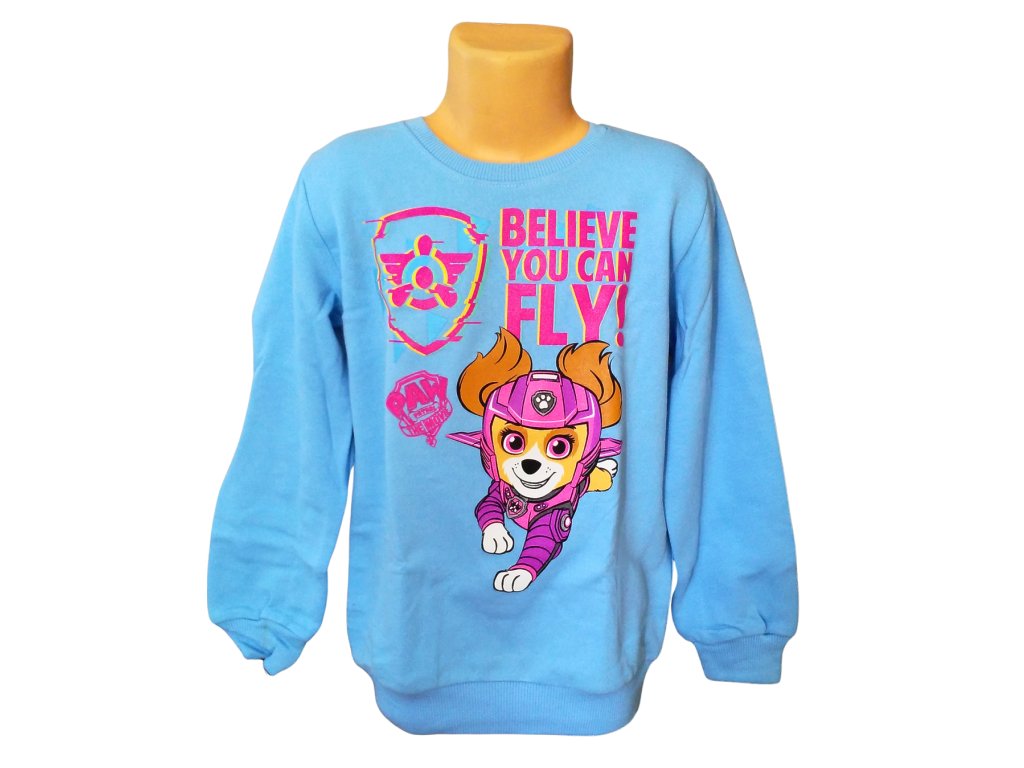 - Velmi krásná mikina Paw Patrol v oblíbené modré barvě si holčičky okamžitě zamilují. Je příjemně hřejivá, z rubové strany opatřená jemným chloupkem, který zajistí pohodlí a teplo i v chladnějších dnech. Rukávy i spodní lem jsou zakončeny pružnými manžetami pro komfortní nošení. Motiv oblíbené záchranářky Skye je pak třešničkou na dortu a dodává mikině kouzelný vzhled.