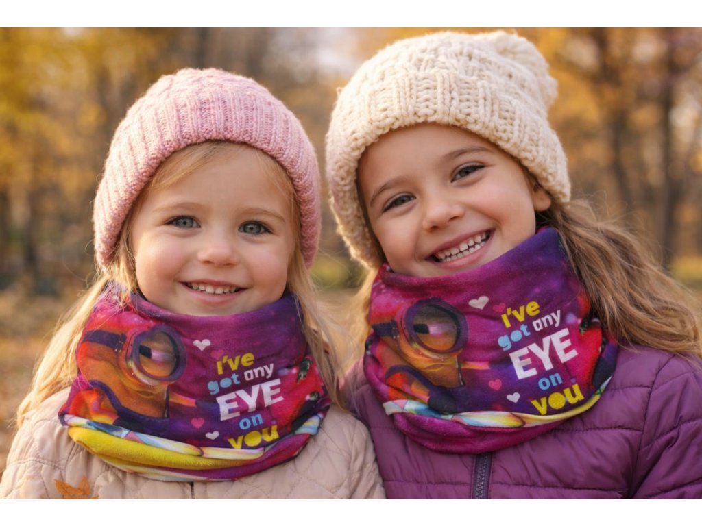 Dětský nákrčník Mimoni pro holky je praktický a stylový doplněk na podzim i zimu. Veselý motiv oblíbených Mimoňů v jasných barvách potěší každou malou slečnu. Nákrčník je vyroben z měkkého a hřejivého materiálu, který spolehlivě chrání krk před chladem a větrem. Díky pružnému střihu se snadno nasazuje, dobře drží a pohodlně se nosí při každodenních aktivitách do školy, školky i na procházky.