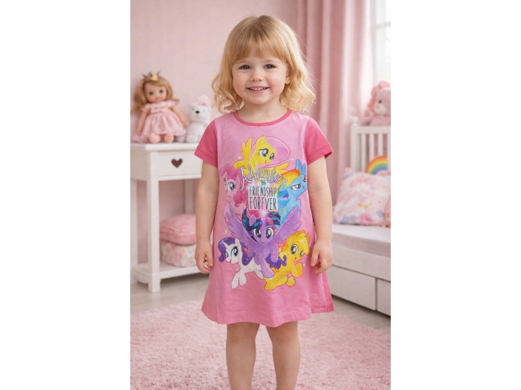 Dívčí noční košile s My little pony určitě udělá radost každé milovnici koníků. Noční košilka je bavlněná včetně motivu, bude se v ní krásně spinkat.