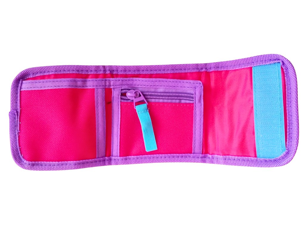 Peněženka pro holky je nezbytný doplněk do školy, do města i na výlety. Má své místo v každé dívčí kabelce i školní tašce. Peněženka má zavírání na suchý zip a uvnitř přihrádku na bankovky, doklady i přihrádku na drobné se zipovým uzávěrem.