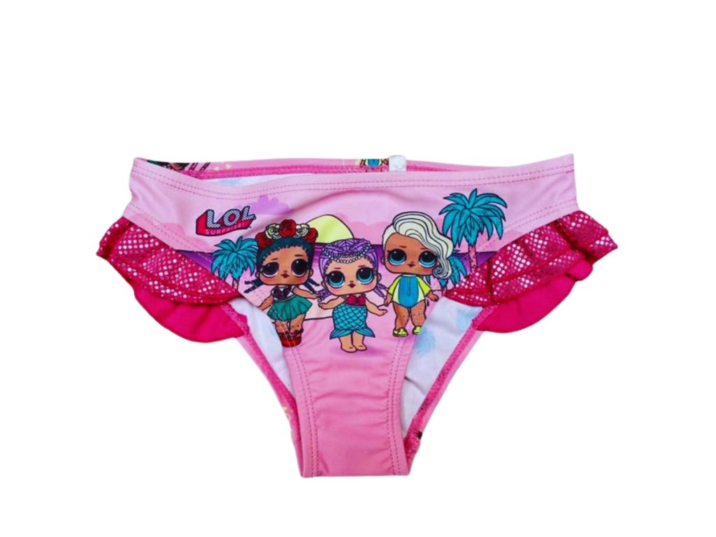 Krásné dívčí plavky s oblíbeným motivem LOL Surprise, přizdobeny volánkem. Zadní i přední díl motiv panenek LOL.