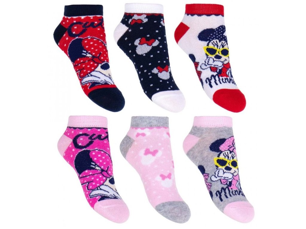 Sada 3 párů barevných kotníkových ponožek s motivem myšky Minnie. Vyrobeny z kvalitní bavlny s vysokým podílem přírodního materiálu, skvěle pruží a perfektně sedí na nožce. Ideální každodenní doplněk do školky i do města.