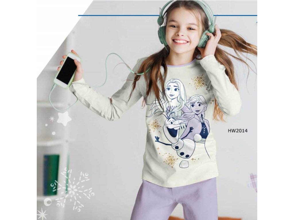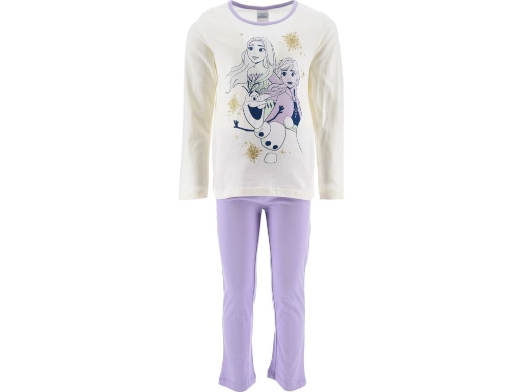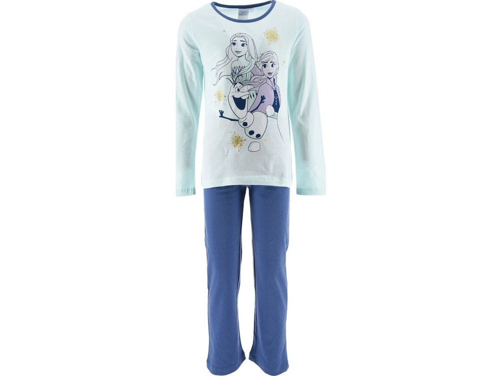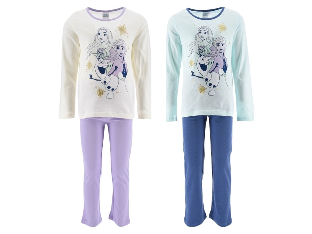 Pohodlné dívčí pyžamo s motivem Anny, Elsy a Olafa z oblíbené pohádky Ledové království si holčičky okamžitě zamilují. Díky pružnému pasu se pyžamo krásně přizpůsobí a nikde netlačí.