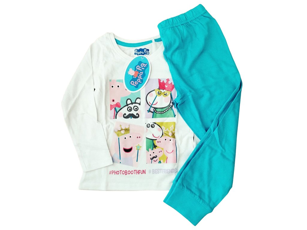 Krásné dívčí pyžamo pro noci plné pohádkových snů s oblíbeným prasátkem a jeho přáteli. Pyžamo je velmi pohodlné a vyrobené z kvalitní bavlny, která je měkká a příjemná na dotek. Tepláčky jsou zakončené pružnými manžetami a v pase je pohodlná, pružná guma. Motiv je jemně doplněn třpytivými detaily, které pyžamu dodávají kouzelný vzhled.