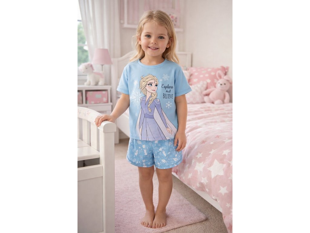 Krásné bavlněné pyžamo s motivem princezny Elsy z pohádky Ledové království potěší každou malou fanynku. Pyžamo je velmi pohodlné a lehké, ideální do teplého počasí, kdy by dlouhé rukávy a nohavice mohly překážet.
