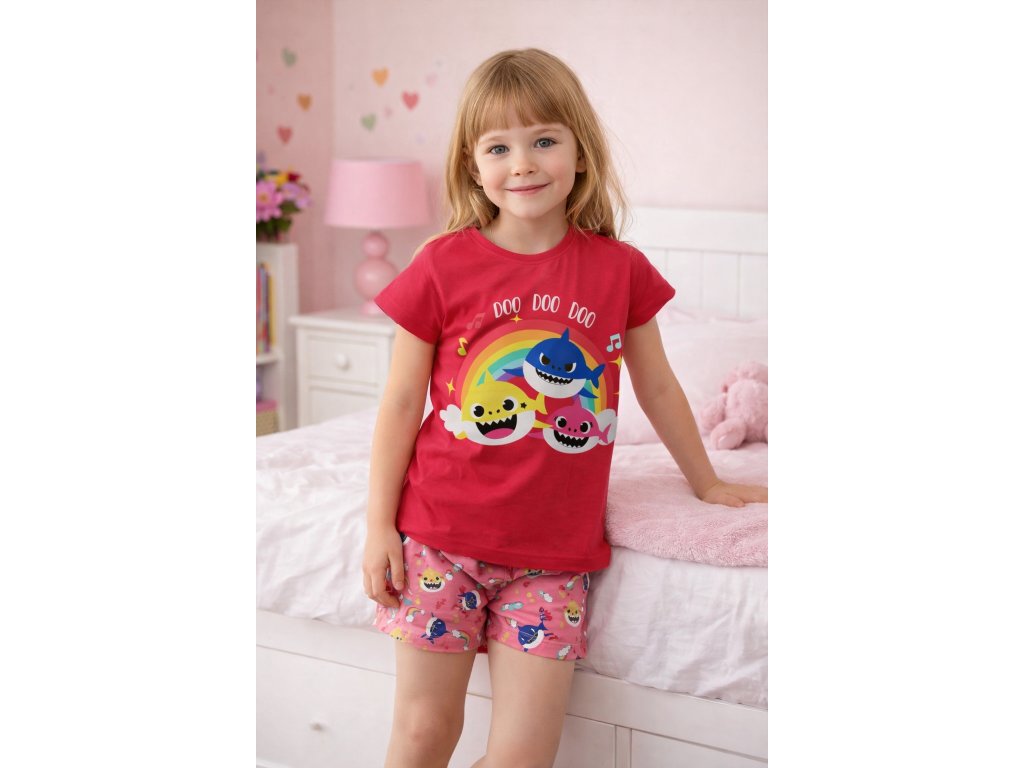 Bavlněné pyžamo Baby Shark je skvělou volbou pro malé holčičky. Velmi příjemný a pohodlný materiál z kvalitní bavlny je šetrný k dětské pokožce. Pyžamo zaujme oblíbeným motivem roztomilých žraločích miminek a díky super pružnému pasu perfektně sedí. Ideální pro klidné spaní i domácí pohodu.