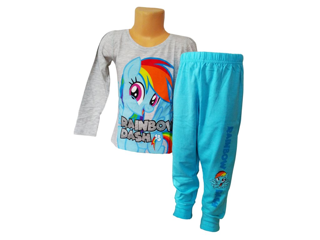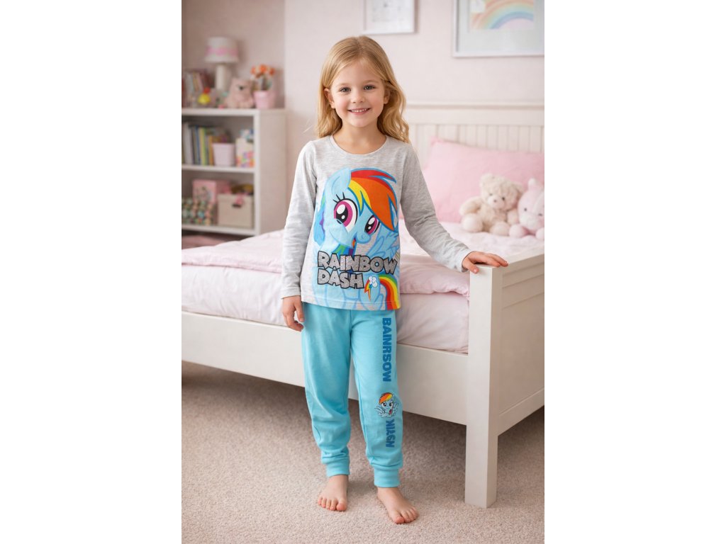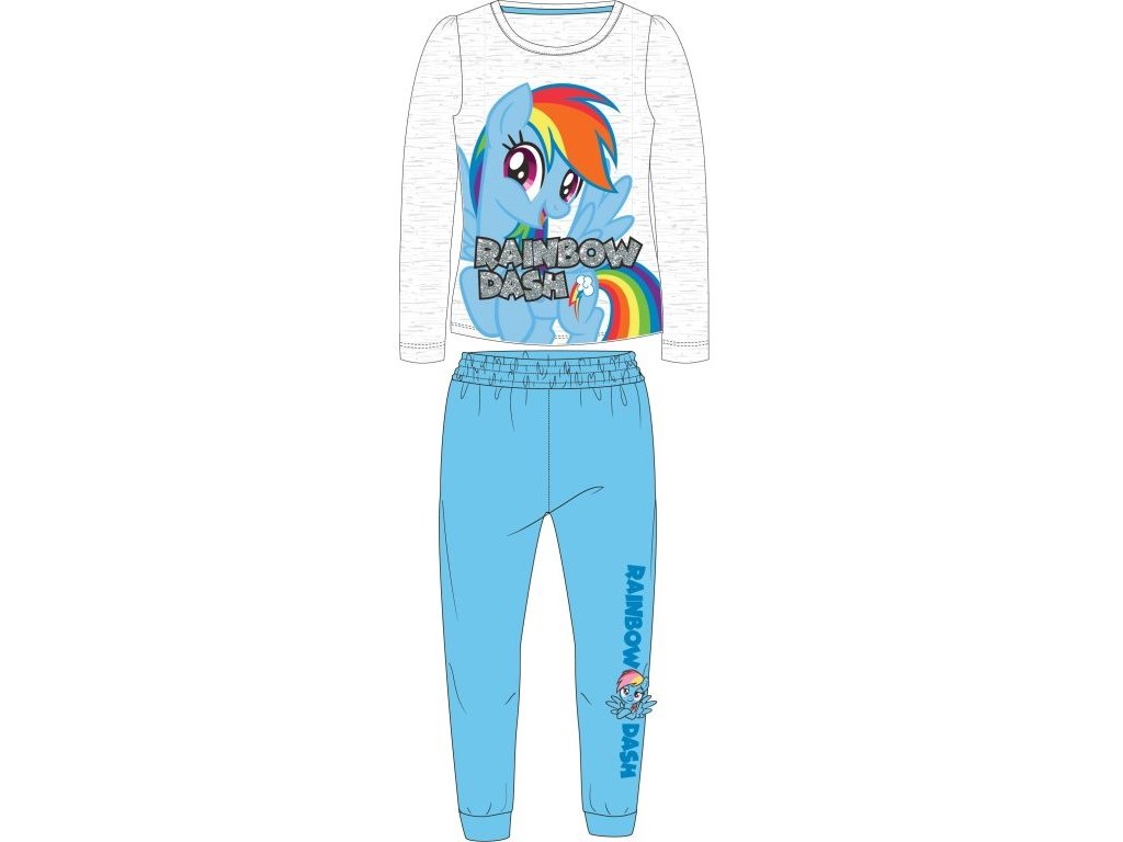 Krásné dívčí bavlněné pyžamo My Little Pony s kouzelným poníkem Rainbow Dash zaujme každou malou fanynku. Pružný pas zajišťuje pohodlné nošení, nohavičky jsou zakončené praktickými manžetami a nápis je ozdoben jemnými třpytkami.
