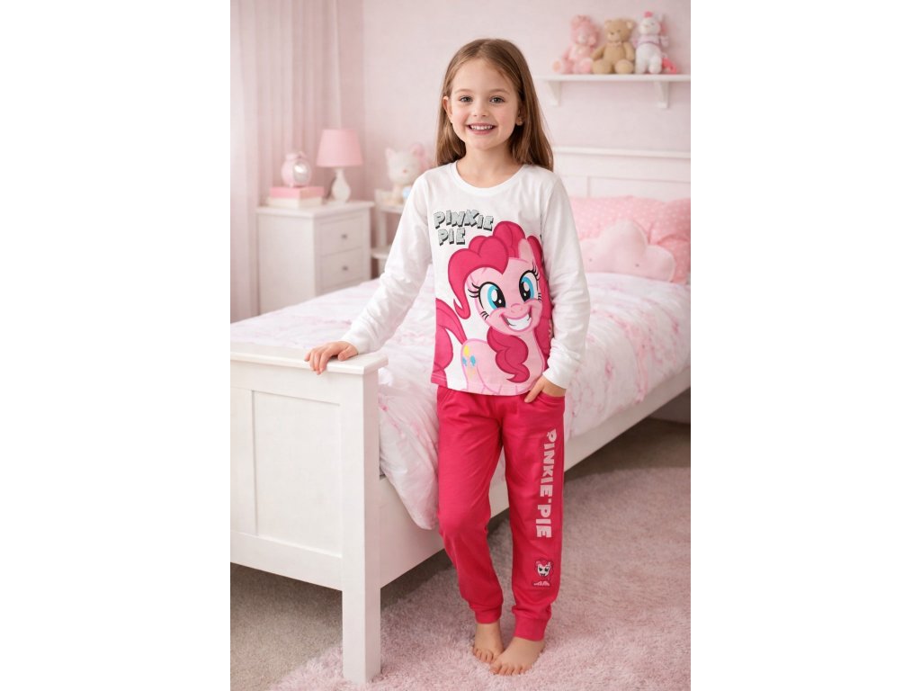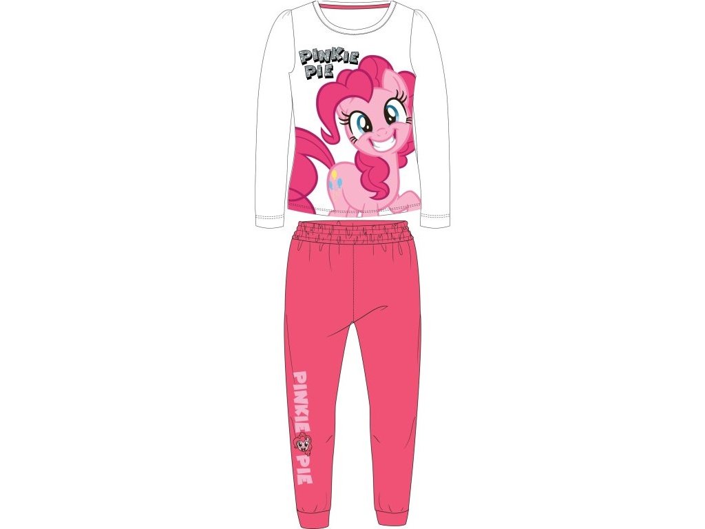 Dívčí bavlněné pyžamo My Little Pony s oblíbeným motivem kouzelného poníka Pinkie Pie. Pyžamo je velmi pohodlné, měkké a příjemné na nošení. Pružný pas zajišťuje dokonalé přizpůsobení, nohavičky jsou zakončené praktickými manžetami a nápis je ozdoben jemnými třpytkami.