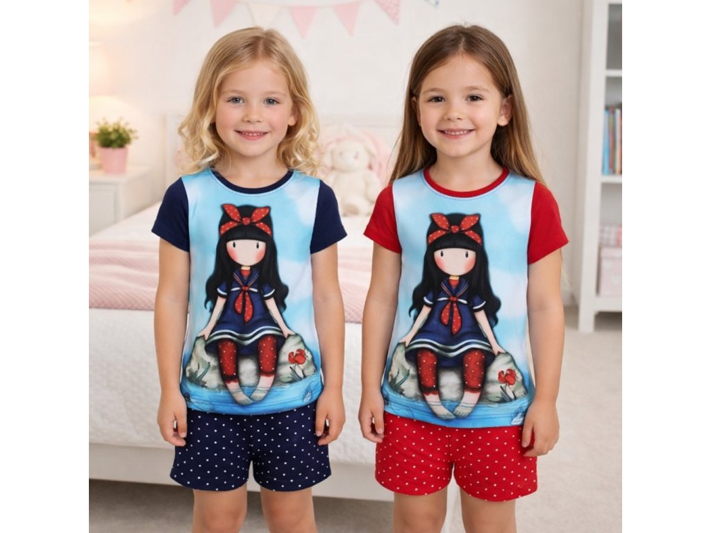 Krásné bavlněné pyžamo s motivem Gorjuss Santoro London, které lze využít i jako pohodlnou letní soupravu na ven. Set je vyroben z kvalitní a příjemné bavlny, která zajišťuje maximální komfort při nošení. Motiv na tričku je celolátkový a působí velmi jemně a elegantně.