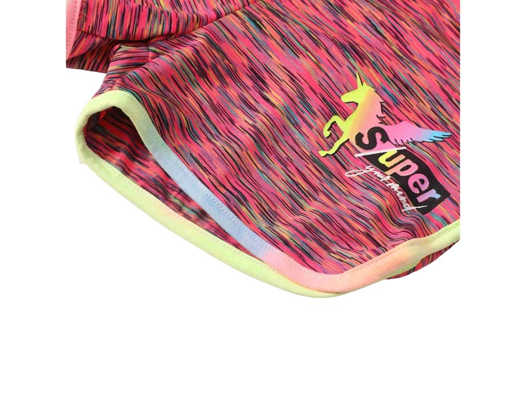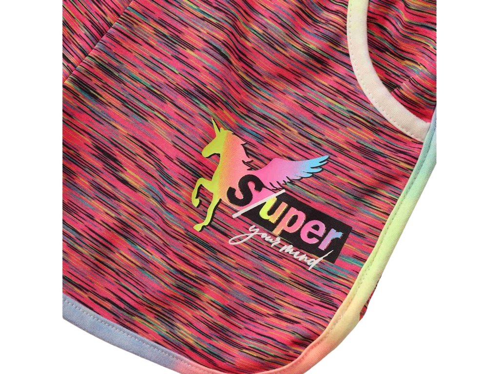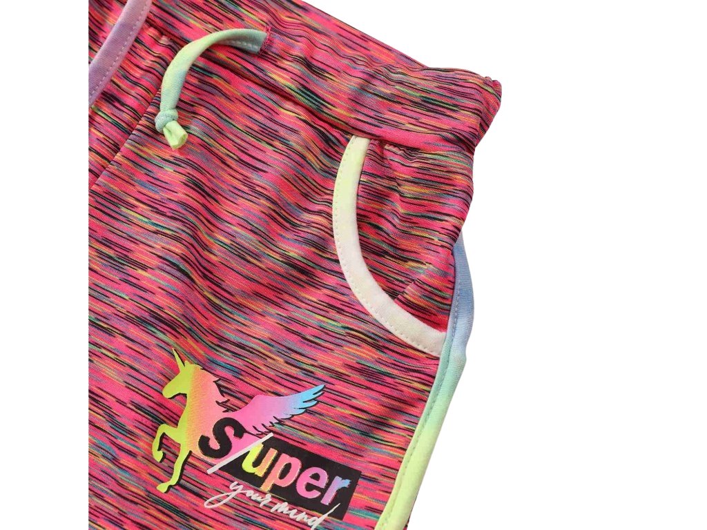 Letní dívčí šortky s motivem Jednorožce – ideální pro parádní letní dny! Šortky jsou vzdušné, velmi pohodlné, mají funkční šňůrku v pase a dvě kapsy. Barevné duhové obruby a roztomilý motiv jednorožce potěší každou malou parádnici. Pružný materiál zajišťuje skvělou volnost pohybu při všech denních aktivitách.