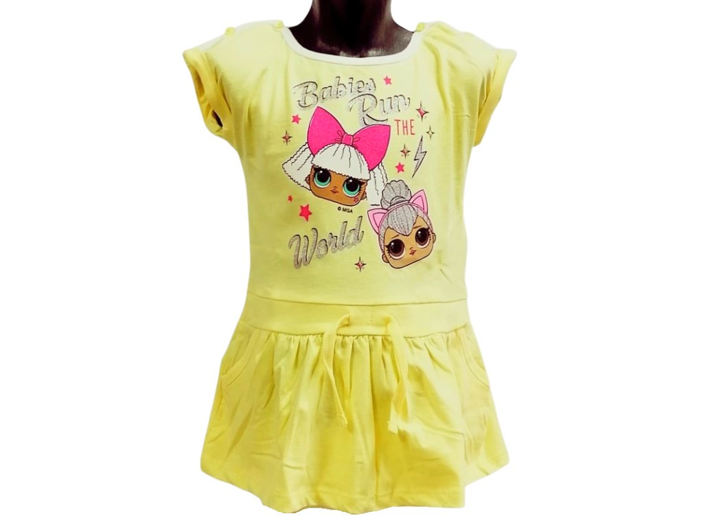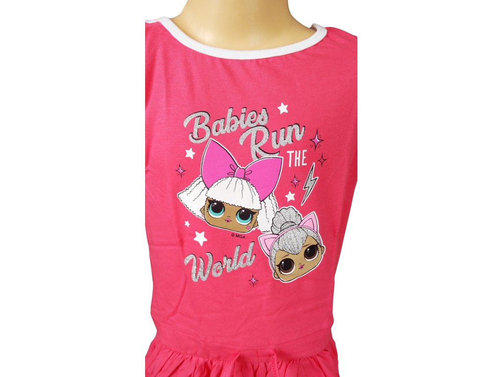 Super pohodlné bavlněné šaty ideální pro letní dny. Dívčí šaty s motivem okatých panenek LOL poskytují dostatek prostoru pro pohyb, takže jsou vhodné doma, do města i na zahradu. Motiv je navíc ozdoben třpytkami, které dětem zaručeně udělají radost.