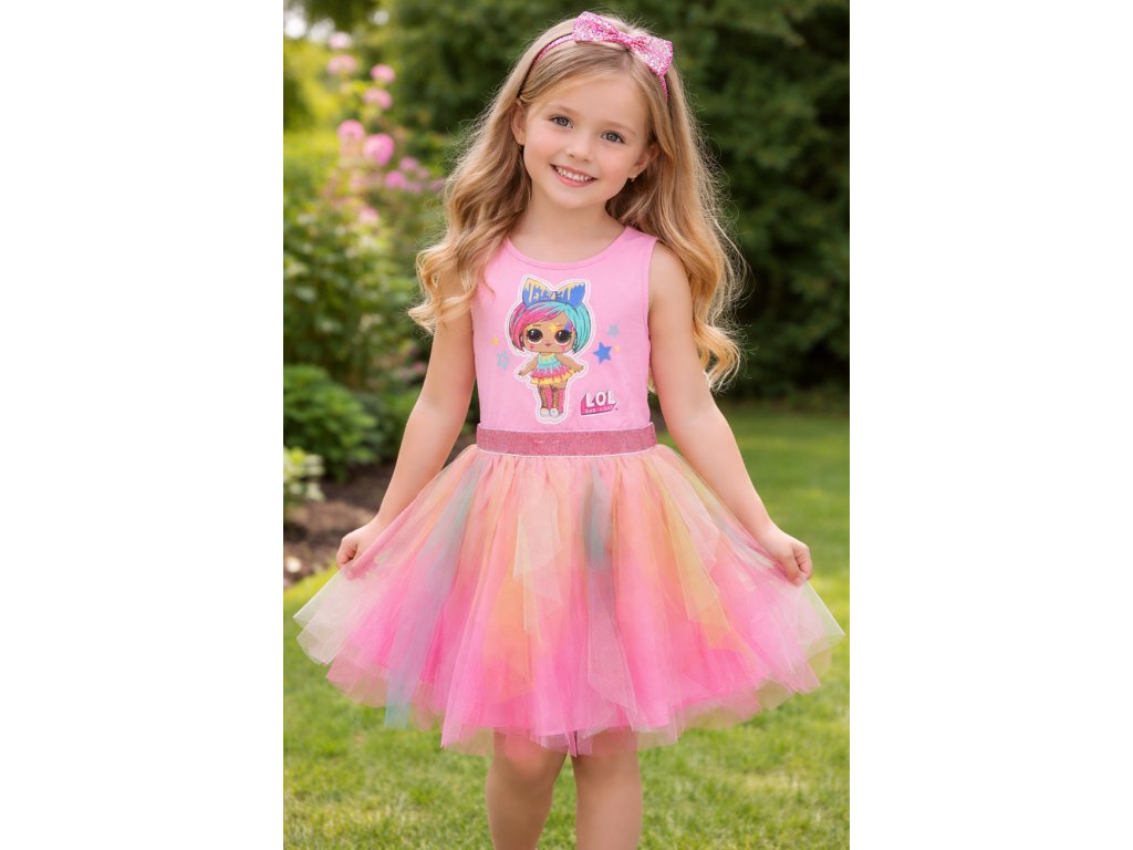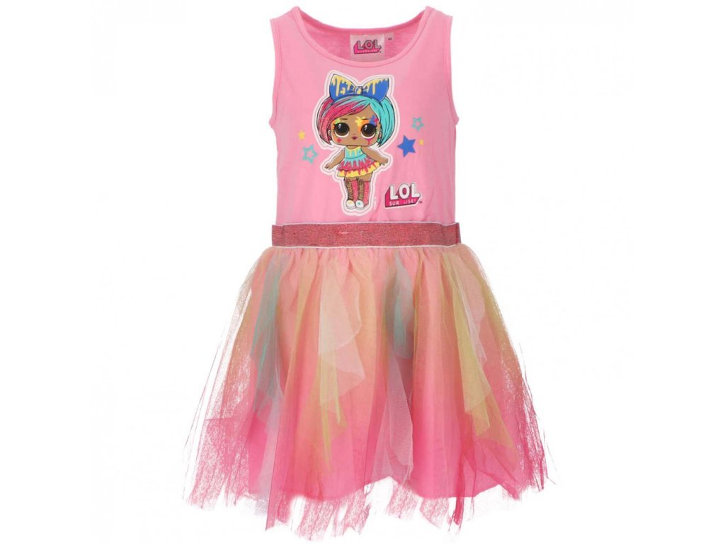 Naprosto úžasné šaty s motivem LOL Surprise pro malé parádnice. Dokonale přizdobeny třpytkami na předním díle a v pase. Vršek je příjemný, bavlněný.