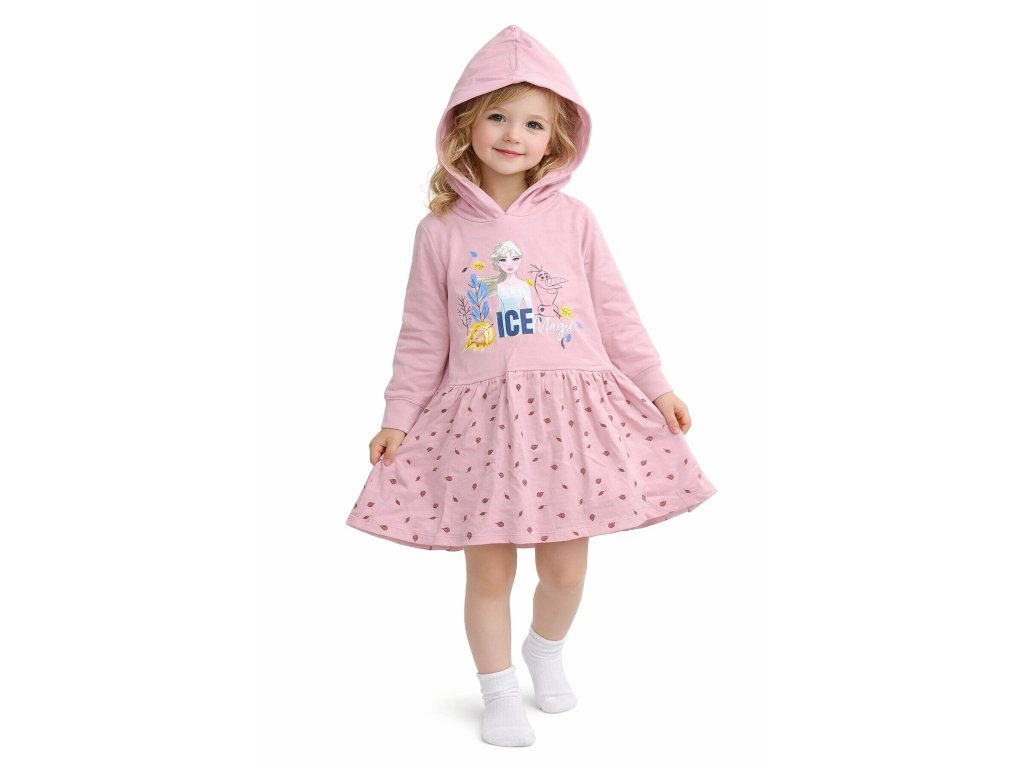Buď princeznou i v chladnějších dnech! 💖 Tyto kouzelné bavlněné šaty s dlouhým rukávem a kapucí zahřejí a zároveň okouzlí na první pohled. Jsou zdobené třpytivými detaily a nádhernou aplikací s pohyblivými korálky, která dodává šatům hravost. Bohatě rozšířená sukýnka zajistí, že se každá holčička bude cítit jako opravdová princezna. Pro ještě větší pohodlí doporučujeme doplnit legínami nebo punčocháčky.