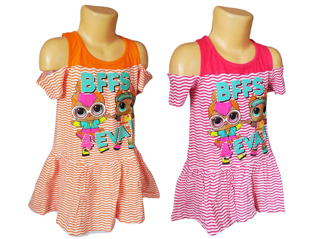 Krásné letní šaty, ve kterých vaše malé princezničky opravdu vyniknou. Barevné volánky upoutají pozornost a dodávají šatům hravý vzhled. Šaty jsou pohodlné a příjemné na nošení, mají originálně dělené rukávky a pro snadné oblékání knoflíček vzadu u krku. Ideální jsou na doma, do města i na zahradu.