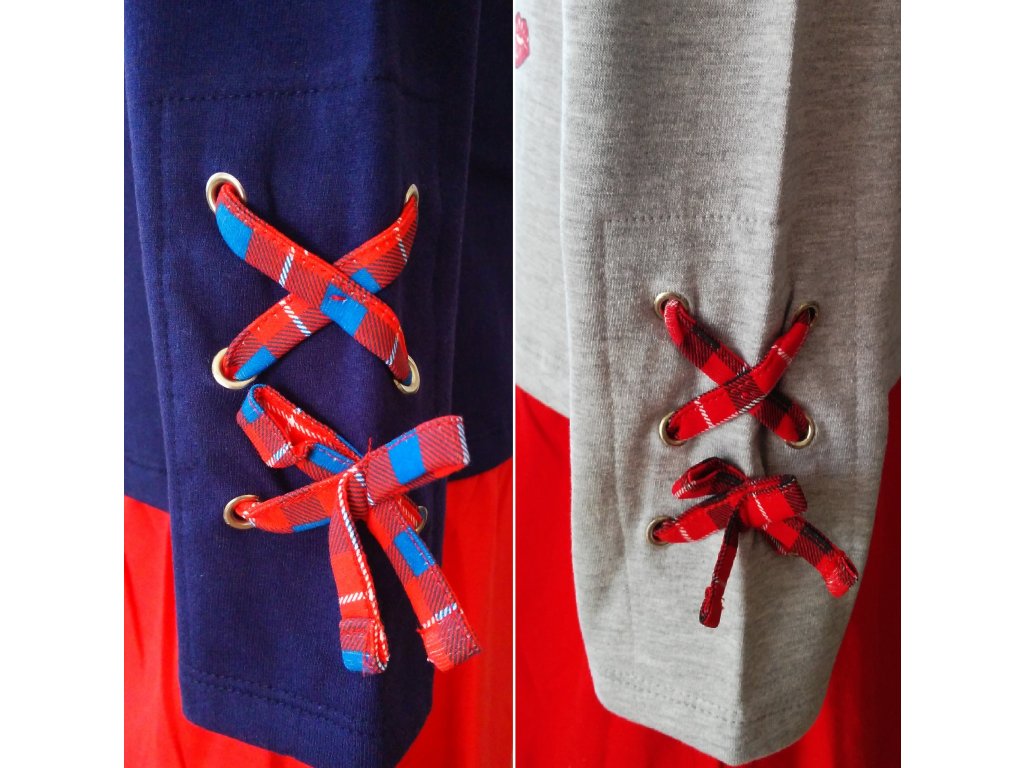 MATERIÁL: modročervené 100% bavlna, šedočervené 91% bavlna+ 9% polyester