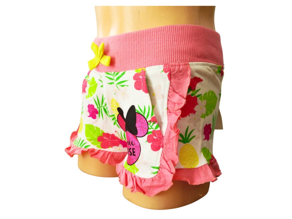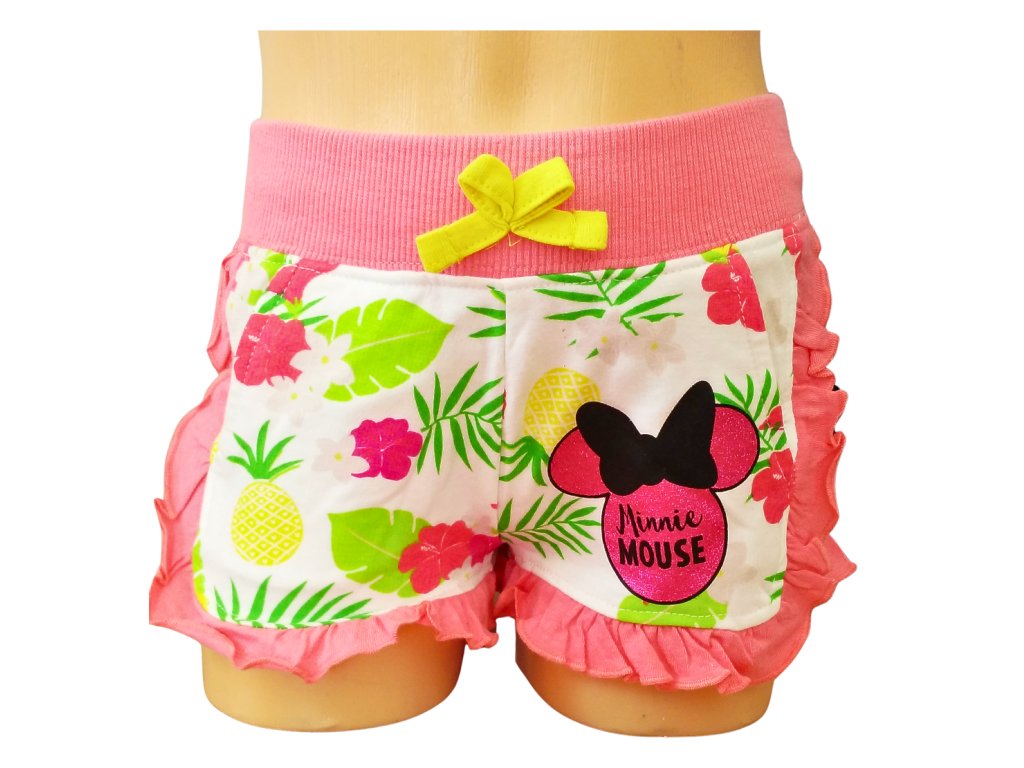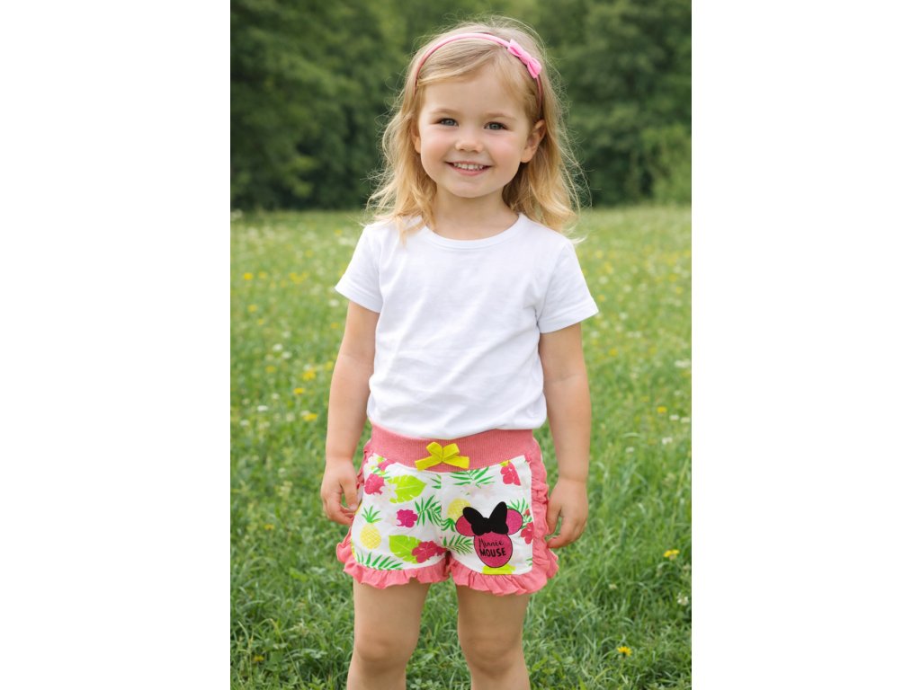 Nádherné šortky Minnie, ze kterých na nás dýchá léto a prázdniny. Kraťasy jsou velmi pohodlné, mají jednu boční kapsu a jsou překrásně zdobeny drobnými volánky a mašličkou v pase. Dívčí šortky jsou velmi praktickou součástí šatníku, jsou vhodné pro různé denní aktivity, pro hry i sport.